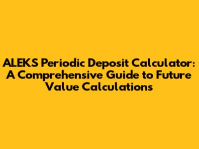 The ALEKS Periodic Deposit Calculator is a valuable tool for anyone seeking to project the future value of their investments and plan for their financial goals. By understanding the principles of periodic deposits, compound interest, and the underlying mathematics of the calculator, you can make informed decisions about your savings strategy and work towards a secure financial future. Whether you're saving for retirement, a down payment, education, or any other long-term goal, mastering the use of this calculator is a significant step towards achieving your financial aspirations. Remember to use realistic assumptions, factor in inflation and taxes, and review your plan regularly to ensure that you're on track to meet your goals. With careful planning and consistent savings, you can harness the power of compound interest and achieve your financial dreams.