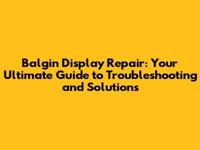 Balgin Display: Repair Guide, Troubleshooting, And Solutions