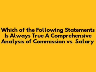 When it comes to compensation structures, understanding the nuances between different payment models is crucial for both employers and employees. In the business world, two prevalent methods stand out: commissions and salaries. The question, "Which of the following statements is always true?" in the context of commission-based versus salary-based compensation, invites a deeper exploration. This article aims to dissect the intricacies of each model, analyze the factors influencing earnings, and ultimately, provide a comprehensive understanding of which statements hold true across various scenarios. We will delve into the mechanics of commission structures, the stability of salaries, and the impact of performance on overall compensation.