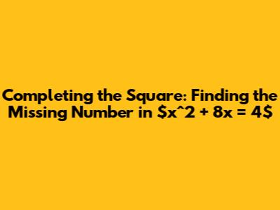 Completing The Square Find The Number To Add To X^2 + 8x = 4