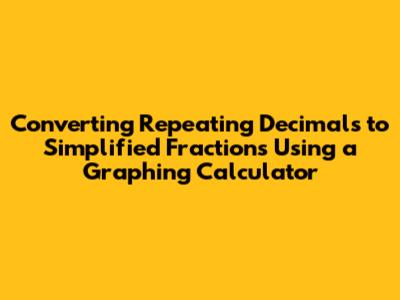 Converting repeating decimals to simplified fractions might seem tricky at first, but with the right tools and techniques, it becomes a manageable task. Whether you prefer using a graphing calculator for its speed and efficiency or the manual method for its conceptual clarity, the key is to understand the process and practice consistently.