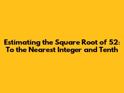 Hey guys! Today, we're diving into the fascinating world of square roots, specifically focusing on how to estimate the square root of 52. This is a super useful skill, especially when you don't have a calculator handy. We'll break it down into two parts: first, estimating to the nearest integer, and then getting a bit more precise by estimating to the nearest tenth. So, let's get started and make sure you understand how to estimate square roots like a pro! Understanding square roots is a cornerstone of mathematical literacy, and it's a skill that extends beyond the classroom into everyday problem-solving scenarios. Estimating square roots involves finding the closest perfect squares to the number in question and using these to approximate the root value. This method not only provides a quick way to find approximate values but also enhances your number sense and your understanding of the relationships between numbers. By estimating the square root of 52 to the nearest integer and tenth, we'll be engaging with core mathematical concepts that underpin various fields, from basic arithmetic to more advanced mathematical disciplines.