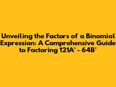 In the realm of algebra, mastering the art of factoring expressions is akin to unlocking the secrets of mathematical relationships. Factoring, in essence, is the process of breaking down a complex expression into simpler components, revealing its fundamental building blocks. Among the diverse array of algebraic expressions, binomials, expressions with two terms, hold a prominent position, often encountered in various mathematical contexts. This article delves into the intricacies of factoring a specific binomial expression, 121A² - 64B², guiding you through a step-by-step process to identify its factors. We'll explore the underlying principles, unravel the patterns, and equip you with the tools to confidently conquer similar factoring challenges.