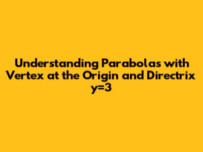 In the realm of analytic geometry, parabolas stand out as fundamental conic sections with a rich set of properties and applications. Understanding parabolas is not just an academic exercise; it's crucial for various fields, including physics, engineering, and even art. This article aims to provide a comprehensive explanation of parabolas, focusing on scenarios where the vertex is at the origin and the directrix is a horizontal line. We will dissect the key characteristics of a parabola, particularly the relationship between the vertex, focus, and directrix, and then apply this knowledge to solve the specific problem at hand: determining the coordinates of the focus of a parabola with a vertex at the origin and a directrix given by the equation y = 3.