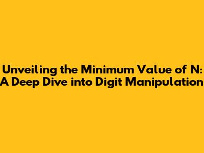 Through a systematic process of rewriting the expression, strategic digit selection, and iterative refinement, we have arrived at the minimum possible value for N. Our journey began by breaking down the expression N = abcd - ad × bc into its constituent parts, revealing the intricate relationships between the digits a, b, c, and d. We then rewrote the expression in a more manageable form, allowing us to analyze the impact of each digit and their combinations on the overall value of N.