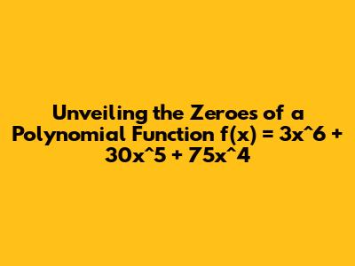 In this comprehensive exploration, we have successfully unraveled the zeroes of the polynomial function f(x) = 3x⁶ + 30x⁵ + 75x⁴. Through the process of factorization, we transformed the polynomial into the insightful form f(x) = 3x⁴(x + 5)². This factored form illuminated the zeroes: x = 0 with a multiplicity of 4 and x = -5 with a multiplicity of 2. These zeroes, along with their multiplicities, paint a vivid picture of the function's behavior and its graphical representation.