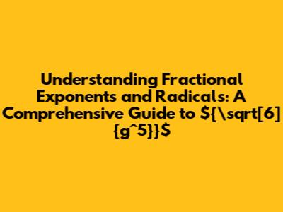 To deconstruct the expression , we must first identify its components. The expression involves a radical with an index of 6 and a radicand of . Here, is the base, and 5 is its exponent within the radical. Applying the equivalence rule between radicals and fractional exponents, we can rewrite in the form of . The index of the radical, which is 6, becomes the denominator () of the fractional exponent, and the exponent of the radicand, which is 5, becomes the numerator (). Thus, transforms into when expressed with a fractional exponent. This transformation highlights the direct relationship between the radical form and the fractional exponent form, making it easier to manipulate and simplify the expression. The fractional exponent representation allows us to apply exponent rules more readily, such as when multiplying or dividing expressions with the same base. This foundational step is critical in more complex algebraic manipulations and problem-solving scenarios, where converting radicals to fractional exponents can significantly simplify the process.