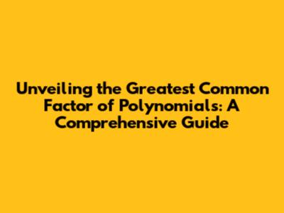 By mastering the concept of the GCF and its application in polynomial factorization, you will enhance your algebraic skills and gain a deeper understanding of mathematical expressions. Remember to practice regularly, avoid common mistakes, and always check your work to ensure accuracy.