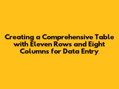 In today's data-driven world, the ability to organize and manage information efficiently is crucial. Whether you're a student, a professional, or simply someone who loves to keep things in order, knowing how to create a well-structured table can significantly enhance your productivity. This article will guide you through the process of creating a comprehensive table with eleven rows and eight columns, specifically designed for data entry. We'll cover everything from setting up the table to inputting headings and sample data, ensuring you have a practical and informative resource at your fingertips. The skills you'll gain here are transferable across various platforms, from spreadsheet software like Microsoft Excel and Google Sheets to word processors like Microsoft Word and Google Docs. This comprehensive guide will empower you to create and manage structured data effectively, making it an invaluable asset in your daily tasks and projects. This process is not just about creating a table; it's about understanding the fundamental principles of data organization. A well-structured table is the backbone of any database or data analysis project. By learning how to create one, you're taking the first step towards mastering data management. So, let's dive in and explore how to build an effective and efficient table for your data entry needs. Remember, the key to success in data management is meticulousness and attention to detail, and this guide will help you cultivate those qualities.