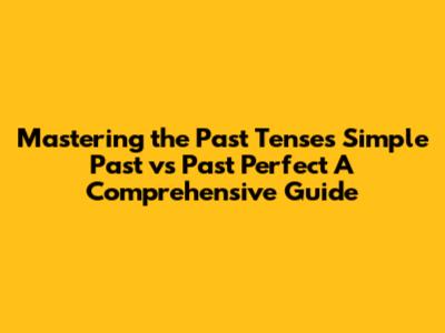 Mastering Simple Past And Past Perfect Tenses A Comprehensive Guide