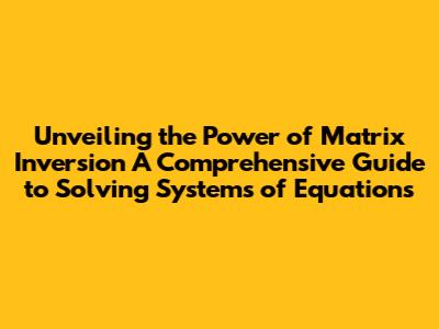 Matrix Inversion Method Solving Systems Of Equations A Comprehensive Guide