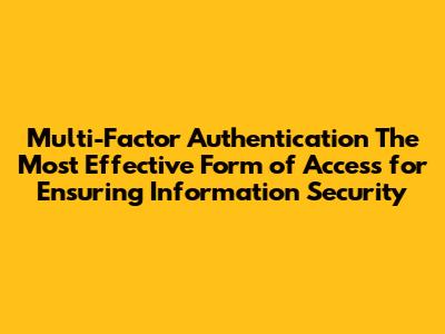Multi-Factor Authentication The Most Effective Form Of Access For Ensuring Information Security