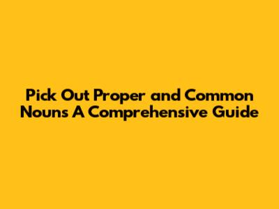 Pick Out Proper And Common Nouns A Comprehensive Guide