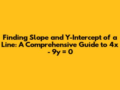 In the realm of mathematics, understanding the properties of lines is fundamental. One crucial aspect is identifying the slope and y-intercept of a line given its equation. This article will provide a comprehensive guide on how to determine the slope (m) and the y-intercept (b) of a line, using the equation 4x - 9y = 0 as a practical example. We will delve into the concepts of slope-intercept form, algebraic manipulation, and the significance of these parameters in visualizing and interpreting linear equations. Whether you're a student grappling with linear equations or a professional seeking a refresher, this guide will equip you with the knowledge and skills to confidently tackle similar problems.