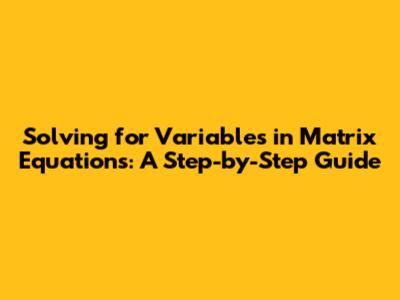 Solving For Variables In Matrix Equations: A Step-by-Step Guide