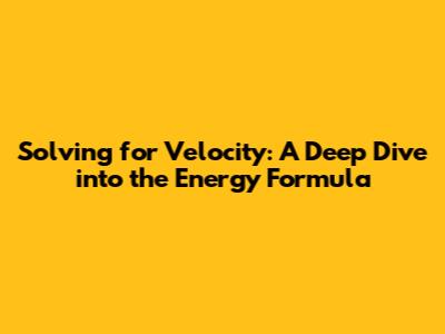 Solving For Velocity: A Deep Dive Into The Energy Formula