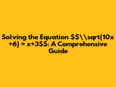 In this article, we delve into the step-by-step solution of the equation $\sqrt{10x+6} = x+3$. This type of equation, involving a square root, often appears in algebra and calculus problems. Understanding how to solve it effectively is crucial for students and anyone involved in mathematical problem-solving. We will break down each step, providing clear explanations and insights to ensure a comprehensive understanding. We will not only focus on finding the solutions but also on verifying them to ensure they are valid within the original equation's domain. This meticulous approach will help avoid common pitfalls and strengthen your problem-solving skills.