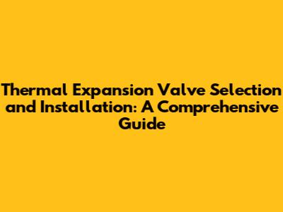 Thermal Expansion Valve Selection And Installation A Comprehensive Guide