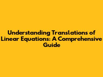 In the realm of coordinate geometry, transformations play a pivotal role in manipulating geometric figures and understanding their properties. Among these transformations, translations hold a special significance due to their simplicity and widespread applications. Translations involve shifting a figure from one location to another without altering its size, shape, or orientation. In this comprehensive guide, we delve into the concept of translating linear equations, specifically focusing on the line y = x, and explore the resulting equation after translating it three units down. Understanding translations is crucial for grasping more complex geometric concepts and problem-solving techniques in mathematics.