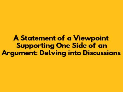 In conclusion, a statement of a viewpoint supporting one side of an argument is a powerful tool for shaping discussions, influencing opinions, and driving progress. It provides a focal point for argumentation, guiding the presentation of evidence and reasoning. Crafting a compelling statement requires clarity, conciseness, and debatability, as well as an understanding of the audience and context. Supporting the viewpoint with credible evidence and logical reasoning is essential for building a persuasive argument. By engaging in respectful dialogue and critical thinking, individuals can navigate discussions effectively and contribute to informed decision-making. Whether in academic debates, political campaigns, or everyday conversations, the ability to articulate and defend a viewpoint is a valuable skill that empowers individuals to make their voices heard and shape the world around them.